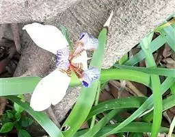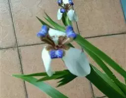 双色野鸢尾为多年生草本植物,叶子呈剑状淡绿色。…