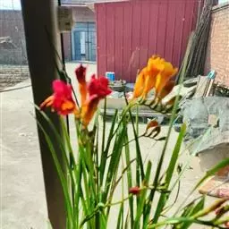 又名红花香雪兰、长梗雪香兰。叶长40~60cm,花茎强壮多分枝,植株高50cm;花筒部白色,喉部橘红色,花被片的边缘粉紫色;花期较迟。