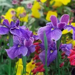 花菖蒲:是玉蝉花的变种。多年生宿根挺水型水生花卉。根状茎短而粗,须根多并有纤维状枯叶梢,叶基生,线…