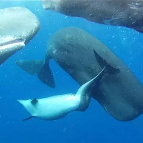 抹香鲸是鲸目、抹香鲸科的海洋哺乳动物。体长可达18米,体重超过50吨,是体型最大的齿鲸,…