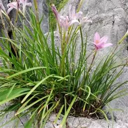 韭莲 韭莲粉红色,甚鲜艳,尤以高温多湿的梅雨季节最盛,花期早自5月下旬初开断续至11月上旬气温速降才止。园林中适宜在花坛、花镜和草地边缘点缀,或被地片栽,都很美观。 盆栽室内装饰,花、叶都罕观赏。韭莲株丛低矮、终年常绿、花朵繁多、花期长,繁茂的粉红色花朵高出叶端,在丛丛绿 叶的衬托下,异常美丽,花期给人以温馨舒适的感觉。适用于林下、边缘或半荫处作园林地 被植物,也可作花坛、花径的镶边材料,在草坪中成丛散植,可组成缀花草坪,饶有野趣, 也可盆栽供室内观赏。