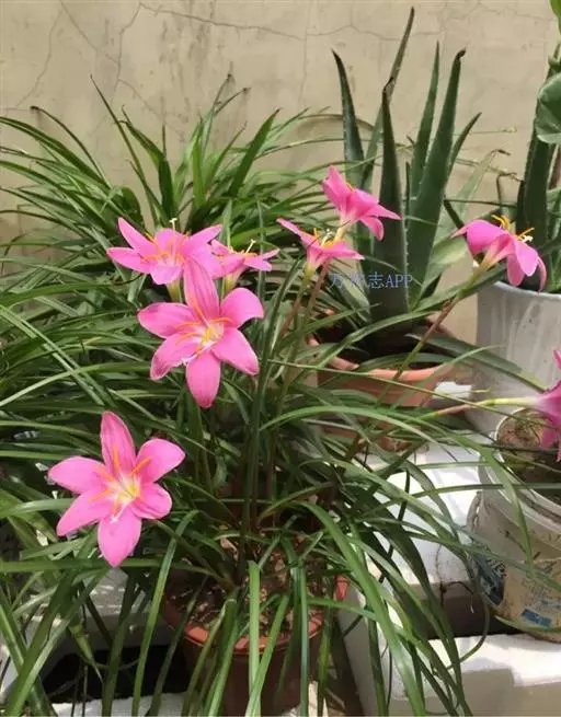韭莲(Zephyranthes grandiflora Lindl. ),为石蒜科葱莲属多年生草本植物, 丛生。