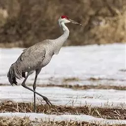 沙丘鹤(学名:Grus canadensis)为鹤科鹤属的鸟类。该物种的模式产地在加拿大哈得逊湾。沙丘鹤又叫棕鹤或加拿大鹤,是大型涉禽,体长100-110厘米。通体的羽色均为灰色而缀有褐色,下体稍淡。前额、眼先和头顶的前部都有裸露的皮肤,呈鲜红色,被有稀疏的象头发一样的刚毛。颏部和喉部为白色。长腿几乎为黑色。主要以各种灌木和草本植物的叶、芽、草籽和谷粒等为食。中国国家二级重点保护野生动物。