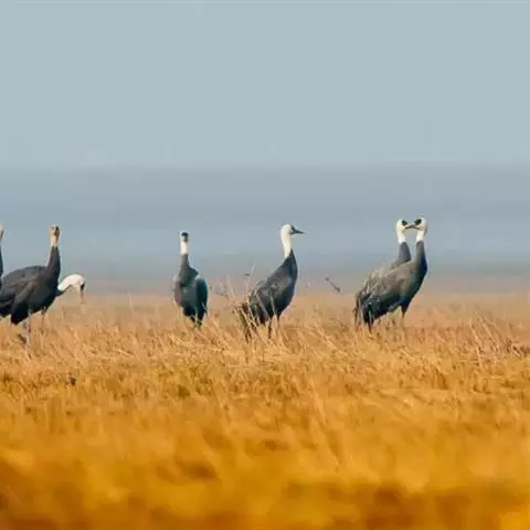 沙丘鹤栖息于富有灌丛和水草的平原沼泽、湖边草地、水塘及河岸沼泽地带,有时也出现在有树木和草本植物的高原地带。