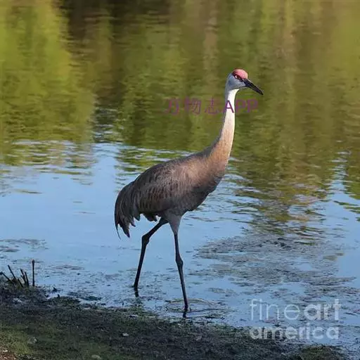 沙丘鹤又叫棕鹤或加拿大鹤,是大型涉禽,体长100-110厘米。通体的羽色均为灰色而缀有褐色,下体稍淡。前额、眼先和头顶的前部都有裸露的皮肤,呈鲜红色,被有稀疏的象头发一样的刚毛。颏部和喉部为白色。初级飞羽为11枚,第三枚最长,飞羽的内 为黑褐色,三级飞羽延长成弓状,羽端的羽枝分离,覆盖在尾羽上。尾羽为12枚,短而直。长腿几乎为黑色。脸偏白,额及顶冠红色,飞行时可见深灰色的飞羽。虹膜黄色;嘴灰色;脚灰色。