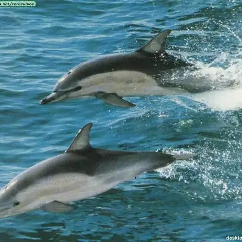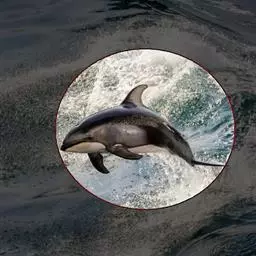 真海豚,身体细而流线型。体色十分复杂而独特,通常十字交叉型,黄褐色在前灰色在后,背面黑色向下延伸,…