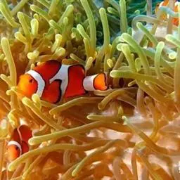 小丑鱼(学名:Amphiprioninae)是对雀鲷科海葵鱼亚科鱼类的俗称,因为脸上都有一条或两条白色条纹,好似京剧中的丑角而得名,是一种热带咸水鱼。已知有28种,一种来自棘颊雀鲷属(Premnas),其余来自双锯鱼属(Amphiprion)。小丑鱼与海葵有着密不可分的共生关系,因此又称海葵鱼。
