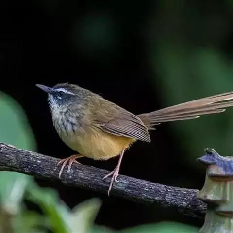 黑喉山鹪莺:体长16厘米,是一种长尾的褐色鹪莺。具明显的白色眉纹及形长的尾。特征为胸具黑色纵纹。…
