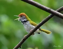 金头扇尾莺体小而具褐色纵纹的莺。嘴细长,略向下弯;翼短,体型娇小,尾长。下体皮黄,喉近白,尾深褐,…