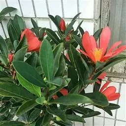 盛开时红红火火,颇似杜鹃花,其叶浓绿光亮,有杜鹃叶片的风姿,长势旺,花期全年(盛花期红,花朵密集,为7至9月)。
