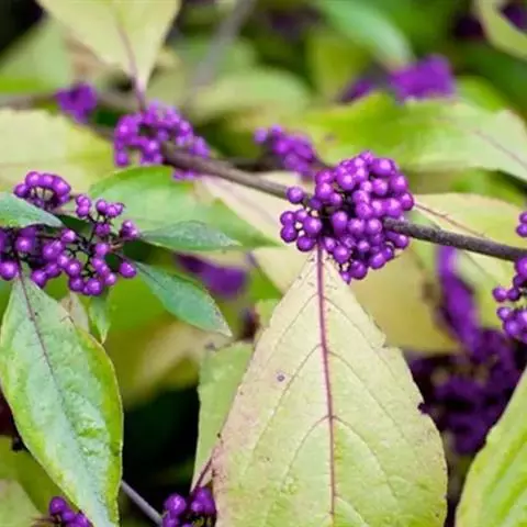 紫珠是唇形科、紫珠属落叶灌木,高约2米;叶片卵状长椭圆形至椭圆形,顶端长渐尖至短尖,基部楔形,…