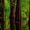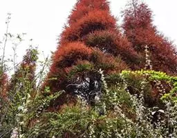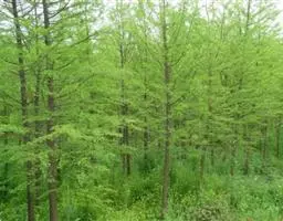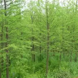 落羽杉 Rich.),杉科落羽杉属木本植物。树干尖削度大,基部通常膨大,具膝状呼吸根,树皮棕色,…