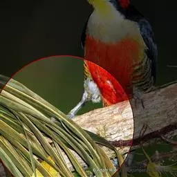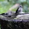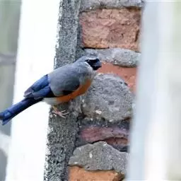 雌鸟和雄鸟大致相似,但头部黑色较暗淡少光泽,背灰色沾褐,下背微沾棕,下体不为红色而为褐灰色微沾红色,其余似雄鸟。