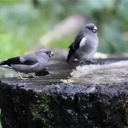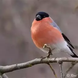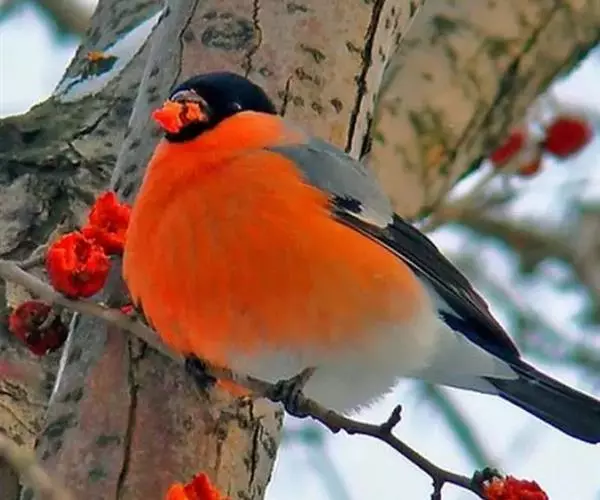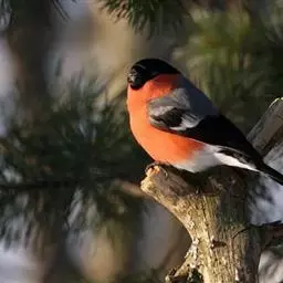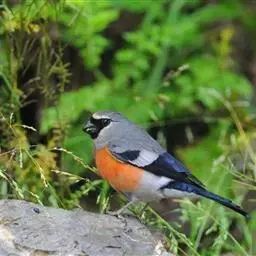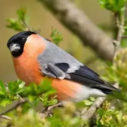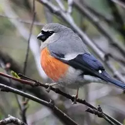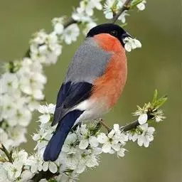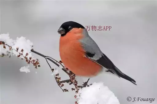 红腹灰雀(学名:Pyrrhula pyrrhula):为雀形目雀科灰雀属的鸟类。体重18-36克,体长154-179毫米;雄鸟的腹部红色,上体余部从颈至背,包括肩羽和翼上覆羽概灰色;腰部白色;尾羽紫黑色;外侧尾羽基部的大部白色;大覆羽基部黑色,尖端白色,形成翼上显明白带;颊、喉、颈侧以及下体概呈鲜红色,至下腹到尾下覆羽转为纯白色。雌性成鸟:全体灰色,无红色渲染,背部微沾棕色;其余部分与雄鸟相同。虹膜赤褐色;嘴黑色;脚褐色。