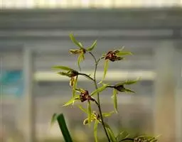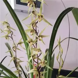 寒兰是兰科兰属的地生草本植物。茎为椭圆形;叶呈带状,尾部修长渐尖,叶脉较明显;每秆花枝开5-12朵,…