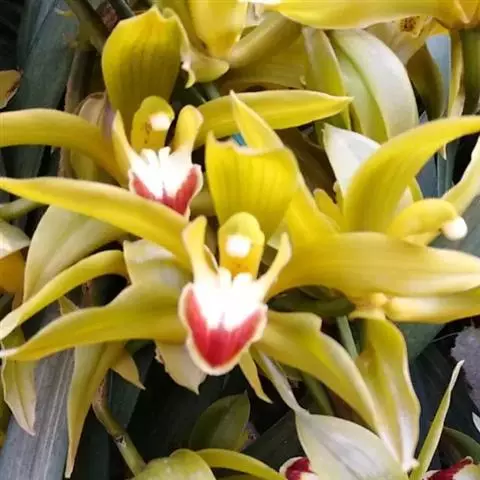 花葶从假鳞茎基部发出,直立,长20-35厘米或更长,但一般短于叶;总状花序具3-9(-13)朵花;花苞片除最下面的1枚长可达1.5-2厘米外,其余的长5-8毫米,一般不及花梗和子房长度的1/3,至多不超过1/2;花梗和子房长2-2.5(-3)厘米;花常有香气,色泽变化较大,通常为浅黄绿色而具紫斑;萼片近狭长圆形或狭椭圆形,长2.3-2.8厘米,宽5-8毫米;侧萼片常向下斜展。