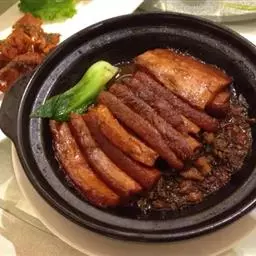 梅菜扣肉,汉族传统名菜,属客家菜 。制作材料有五花肉、梅菜、葱白、姜片等。
