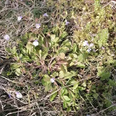 一年生草本,高3-30厘米,无毛或疏生短柔毛。主根伸长,垂直向下或短缩,须根纤细,多数,散生或簇生。本种在体态上变化幅度很大,茎1-5支或有时更多,直立,上升或倾卧状上升,着地部分节上常能长出不定根,分枝多而披散,少不分枝。基生叶少到多数,有时成莲座状或早落,倒卵状匙形至卵状倒披针形,膜质至薄纸质,长2-6厘米,顶端全缘或有不明显的疏齿,基部楔形,下延成带翅的叶柄,边缘具不规则的粗齿或基部有1-2片浅羽裂;茎生叶对生或互生,少数,与基生叶相似或几乎等大。总状花序生于茎、枝顶端,常在近基部即生花,伸长或上部成束状,通常3-20朵,花疏稀;花梗在果期长达10毫米,上部的较短;花萼钟状,花期长约6毫米,果期多少增大,萼片与萼筒近等长,卵形,端急尖,脉不明显;花冠白色、紫色或蓝色,长约10毫米,上唇裂片卵状三角形,下唇中裂片较小,稍突出,倒卵圆形;子房无毛。蒴果球形;种子小而多数,黄色,种皮上有不规则的网纹。花果期4-10月。