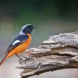 赭红尾鸲:小型鸟类,体长13-16厘米。雄鸟前额、头侧、颈侧、颏至胸概黑色,头顶和背灰色或黑色,…