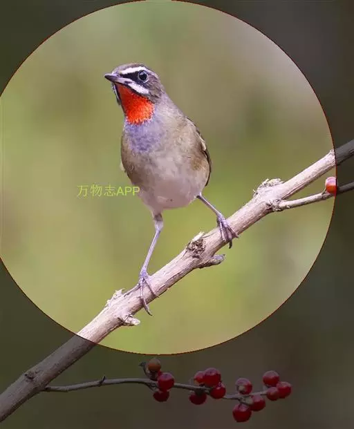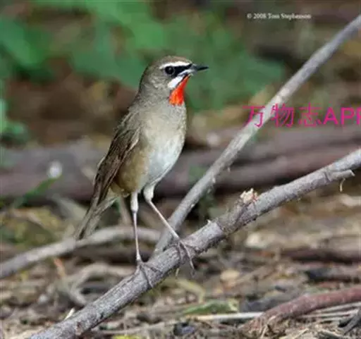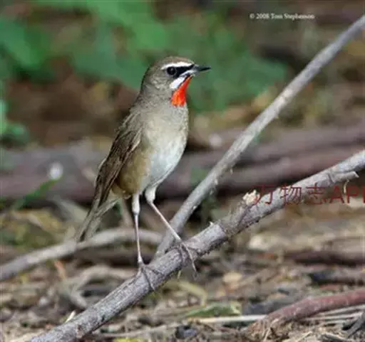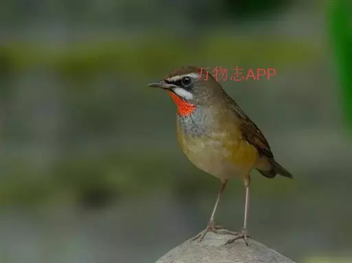 红点颏(学名:Calliope calliope):是鸟纲、鸫科的鸣禽。又名西伯利亚歌鸲。体长14-17厘米,体重16-27克。雄鸟头部、上体主要为橄榄褐色。眉纹白色。颏部、喉部红色,周围有黑色狭纹。胸部灰色,腹部白色。雌鸟颏部、喉部不呈赤红色,而为白色。虹膜褐色。嘴暗褐色。脚角色。
