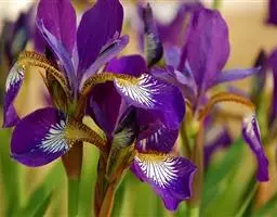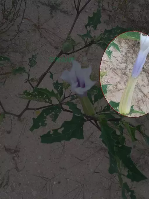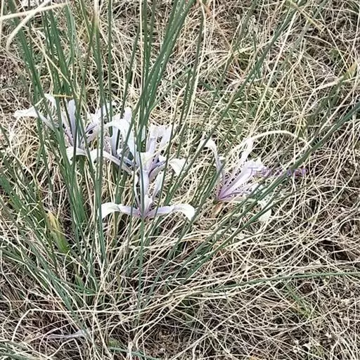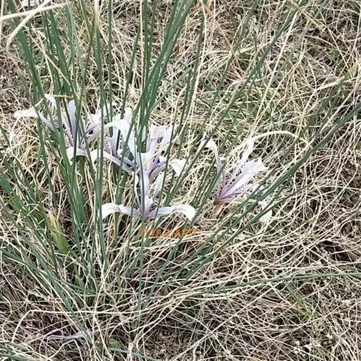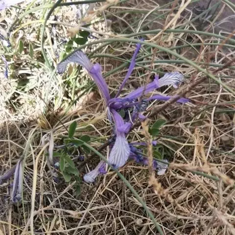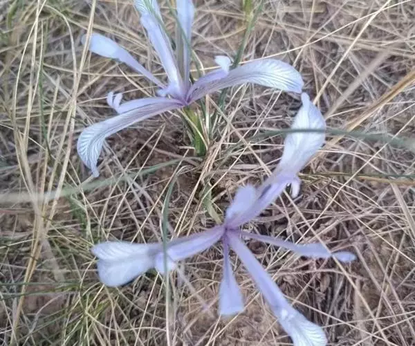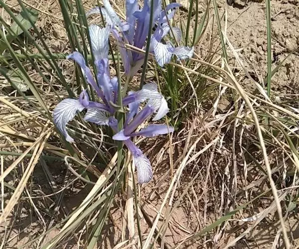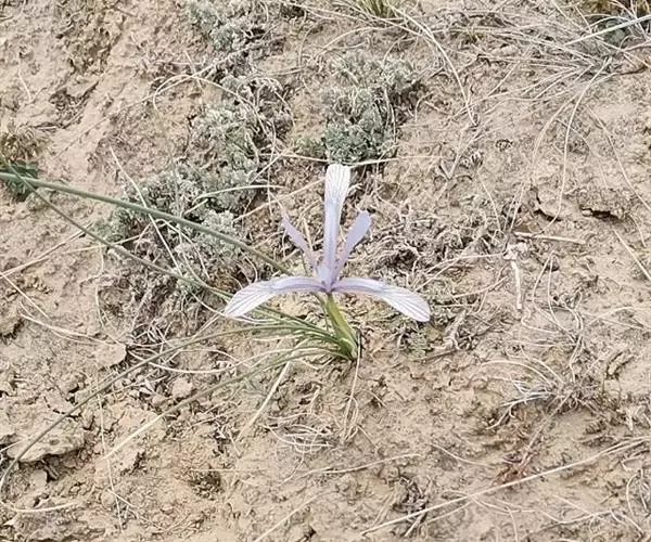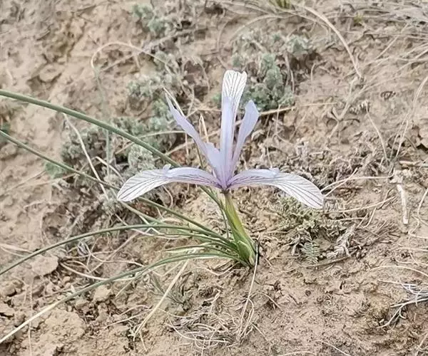 细叶鸢尾(学名:Iris tenuifolia Pall.):多年生密丛草本,植株基部存留有红褐色或黄棕色折断的老叶叶鞘,根状茎块状,短而硬,木质,黑褐色;根坚硬,细长,分枝少。叶质地坚韧,丝状或狭条形。花茎长度随埋砂深度而变化,通常甚短,不伸出地面;苞片4枚,披针形,内包含有2-3朵花;花蓝紫色,直径约7厘米;外花被裂片匙形,爪部较长,内花被裂片倒披针形,直立。蒴果倒卵形,顶端有短喙,成熟时沿室背自上而下开裂。花期4-5月,果期8-9月。