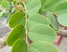 二回羽状复叶长2-7厘米,叶轴糟状,被灰白色柔毛,有腺体;羽片4-8对,长1.5-3.5厘米;小叶通常10-20对,线状长圆形,长2-6毫米,宽1-1.5毫米,无毛。
