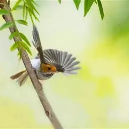 棕脸鹟莺:体长10厘米,是一种色彩亮丽而有特色的莺鸟。头栗色,具黑色侧冠纹。上体绿,腰黄色。下体白,…