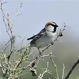 黑顶麻雀:为雀科麻雀属的鸟类。体重24-35克,体长144-167毫米,是一种中等体型的麻雀。…