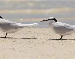 鸥嘴噪鸥,中型水禽,体长31~39厘米。夏羽额、头顶、枕和头的两侧从眼和耳羽以上黑色。背、肩、腰和…