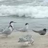 剪嘴鸥:是鸟纲、剪嘴鸥科的中型水鸟,体长40-43厘米。嘴粗,长而侧扁,基部较宽。下嘴较上嘴显著为长。…