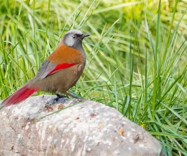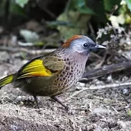红翅薮鹛是噪眉科、薮鹛属中型鸟类,体长21-24厘米。头顶灰褐色,头侧和颈侧赤红色,上体橄榄褐色,…