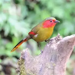 红头噪鹛中型鸟类,体长22~28厘米。头顶棕红色,眼先、脸、颏、喉黑色,上体橄榄色或棕橄榄褐色,…