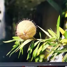 钉头果 W. T. Aiton)为夹竹桃科钉头果属灌木。高达2米;茎被微柔毛;叶对生,…