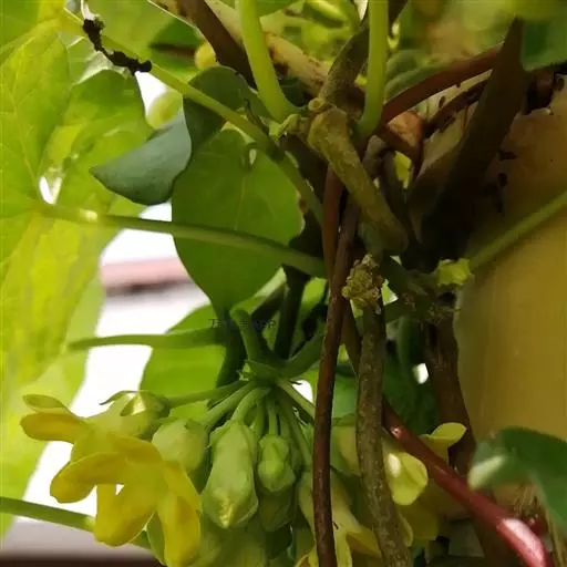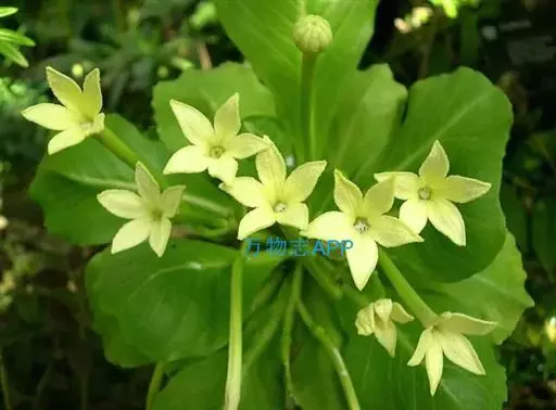 夜来香是柔弱藤状灌木;小枝被柔毛,黄绿色,老枝灰褐色,渐无毛,略具有皮孔。叶膜质,卵状长圆形至宽卵形,长6.5-9.5厘米,宽4-8厘米,顶端短渐尖,基部心形;叶脉上被微毛;基脉3-5条,侧脉每边约6条,小脉网状;叶柄长1.5-5厘米,被微毛或脱落,顶端具丛生3-5个小腺体。