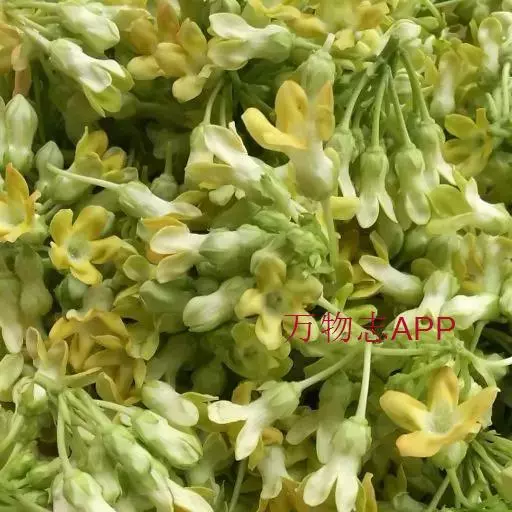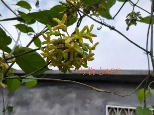 夜来香(学名:Telosma cordata (Burm. f.) Merr.): 柔弱藤状灌木;小枝被柔毛,黄绿色,老枝灰褐色,渐无毛,略具有皮孔。叶膜质,卵状长圆形至宽卵形,叶脉上被微毛。伞形状聚伞花序腋生,着花多达30朵;花芳香,夜间更盛;花冠黄绿色,高脚碟状,花冠筒圆筒形,喉部被长柔毛,裂片长圆形,具缘毛,干时不折皱,向右覆盖;副花冠5片,膜质,着生于合蕊冠上,花柱短柱状,柱头头状,基部五棱。蓇葖披针形,外果皮厚,无毛;种子宽卵形,顶端具白色绢质种毛。花期5-8月,极少结果。