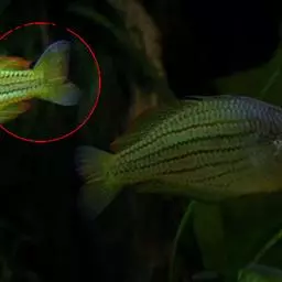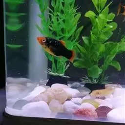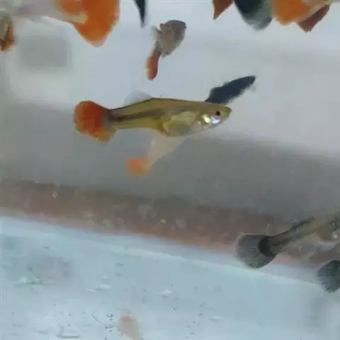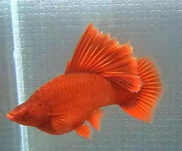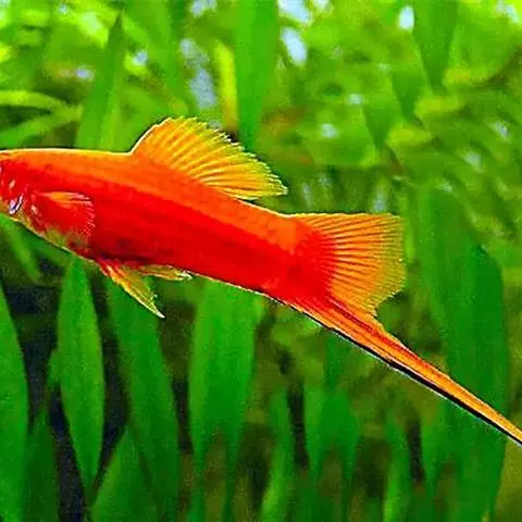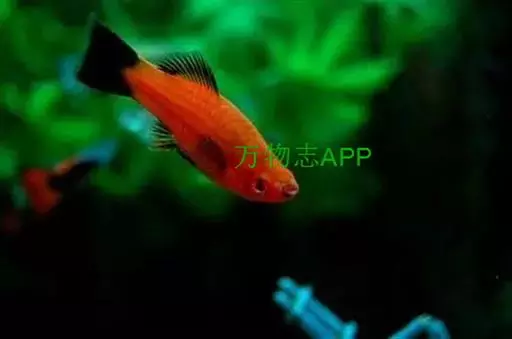 公的红箭鱼发育成熟后鱼尾会长有剑,母鱼的鱼尾则是扇形的