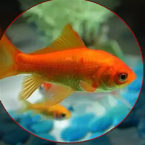 小型鱼,成年个体全长7~10cm,体纺锤形、头尖尾长。红剑鱼遍体通红,是水草缸中的调色者,俗话说的“万绿丛中一点红”,正是它的写照。另外,雄性携长剑、雌性着圆裙(圆形尾),性别特征分明,也是其它鱼类少见的。