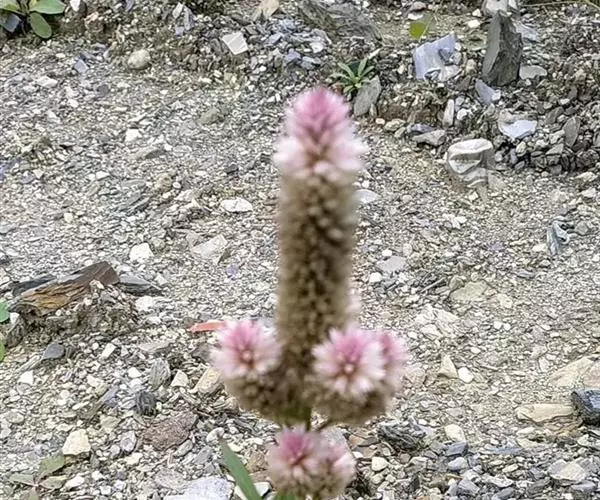 花多数,密生,在茎端或枝端成单一、无分枝的塔状或圆柱状穗状花序,长3-10厘米;苞片及小苞片披针形,长3-4毫米, 白色,光亮,顶端渐尖,延长成细芒,具1中脉,在背部隆起;花被片矩圆状披针形,长6-10毫米,初为白色顶端带红色,或全部粉红色,后成白色,顶端渐尖,具1中脉,在背面凸起;花丝长5-6毫米,分离部分长约2.5-3毫米,花药紫色;子房有短柄,花柱紫色,长3-5毫米。胞果卵形,长3-3.5毫米,包裹在宿存花被片内。种子凸透镜状肾形,直径约1.5毫米。花期5-8月,果期6-10月。