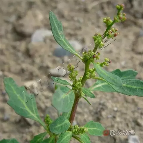 杂配藜,原产地:欧洲及西亚,现广布于北半球温带及夏威夷群,具淡黄色或紫色条棱。一年生草本,…