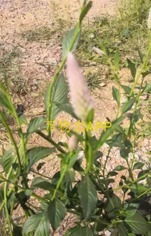 一年生草本,全株无毛;茎直立,有分枝。叶矩圆状披针形至披针形。穗状花序长3-10厘米;苞片、小苞片和花被片干膜质,光亮,淡红色。胞果卵形,盖裂;种子肾状圆形,黑色,光亮。
