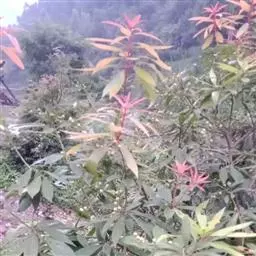 采用两年生苗,苗高20厘米,地径大于0.5厘米。用裸根苗造林,种植时间选在2月份前后,苗木尚未萌动时造林,选择阴雨天定植。前一年年底之前应完成林地清理、整地和挖穴工作。采取全面清理、穴垦整地方式,穴规格为70厘米×40厘米×30厘米,株行距为2米×2米。苗木放入预先挖好的穴中扶正,使根系舒展伸直,覆土后将苗稍稍提起,防止窝根,然后分层回土,踩实,再盖上一层松土。定植之前回土施基肥,南方土壤普遍缺磷,施肥应以磷肥为主。回土时先回表土,回满1/2时提苗一次,让根系舒展,最后让回满土成馒头状,以防积水。