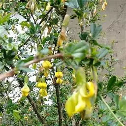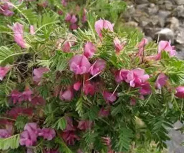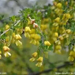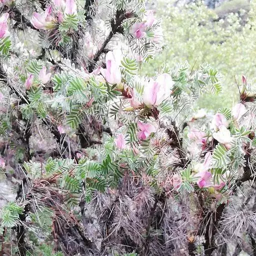 鬼箭锦鸡儿又名:藏锦鸡儿。多刺矮灌木,高l-2m。基部分枝,茎多刺,树皮深灰色至黑色。偶数羽状复叶,小叶4-6对;叶轴宿存并硬化成刺,长5-7cm;叶密集于枝的上部,小叶长椭圆形至线状长椭圆形,长7-24mm,宽1.5-7mm,先端圆或急尖,有针尖,两面疏生柔毛,网脉不明显;托叶与叶柄基部贴生,不硬化成刺。花单生,长2.5-3.5cm,花梗极短,基部有关节;花萼筒状,长l4-17mm,密生长柔毛,基部偏斜,萼齿5,披针形;长为萼筒的1/2;花冠蝶形,淡红色或近白色;子房长椭圆形,密生长柔毛。荚果长椭圆形,长约3cm,宽约7mm,密生丝状长柔毛。花期5-7月,果期7-8月。