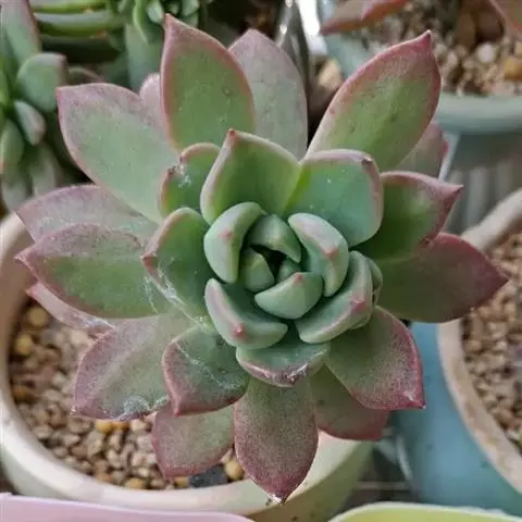 吉娃莲,景天科拟石莲花属,别名:吉娃娃,吉娃莲,植株小型,无茎的莲座叶盘非常紧凑。卵形叶较厚,带小尖,…