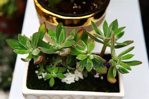 每年早春换盆,加入疏松肥沃的腐叶土、培养土和粗沙的混合土。生长期不宜多浇水,盆土过湿,茎叶易徒长,叶片和根部霉烂,失去观赏价值。特别在冬季低温条件下,水分过多,根部易腐烂死亡。夏季高温会有短暂的休眠,底部叶片会干枯掉落,要减少浇水。阳台栽培切忌阵雨冲淋。作为多肉植物,适应的是贫瘠低肥的土壤,作为盆栽,更不需要施肥。施肥引起节间拉长,影响姿态。如枝条徒长或衰老,可剪短施肥,更新复壮。
