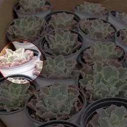 目前市面上常见的锦晃星多为锦之司(Echeveria 'Pulv-Oliver'),是锦晃星与花之司(Echeveria Harsmii)的杂交品种。