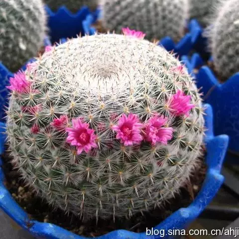 银手球,仙人掌科乳突球属,植株群生,小短圆筒形。原产墨西哥伊达尔戈州。