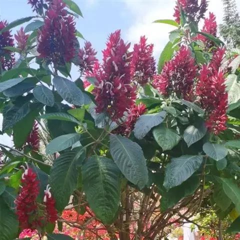 虾蟆花是爵床科老鼠簕属植物;叶对生,羽状分裂或浅裂;花序穗状,顶生,苞片大,小花多数,白至褐红色,…