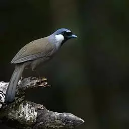 黑顶噪鹛:中型鸟类,体长24-26厘米。前额、脸、颏、喉黑色,头顶黑褐沾棕或深棕橄榄褐色,…