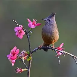 纹喉凤鹛:小型鸟类,体长13-16厘米。头顶和羽冠暗褐色或褐灰色,上体橄榄褐色,飞羽黑褐色,…
