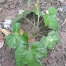 叶宽卵形,长近于宽,长约6-15厘米,基部深心形,全缘或大多3裂,裂片渐尖,中裂片下部收缩,侧裂片具粗齿或再分裂,叶面深绿色,背面苍白,无毛;叶柄长3-10厘米。